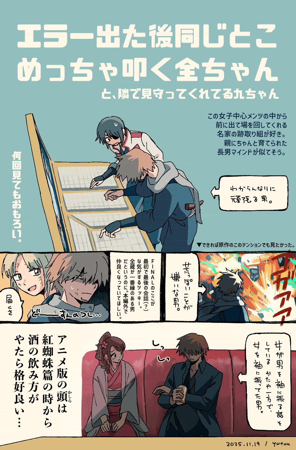 また長々と話してしまった…いやでもこういうことは漫画では語れないんで…なんかその…あれやねん…やっぱ原作寄り真面目話だろうがCPとの境界線どことは完全には引けないワ(完)って話…まあどう描いたって見ない人は見ないし見てくれる人は見てくれるからな…でしかない…描きたいから描く!描いた!投げとけえーい!(っ'-')╮=͟͟͞͞ 📒ってマインド保てる人間になりたい